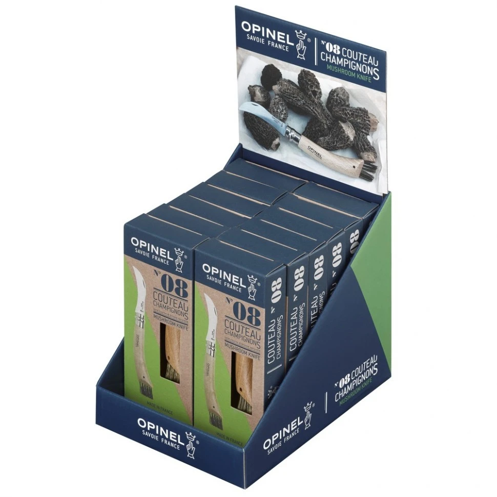 Описание ножа грибника Opinel №8, нержавеющая сталь, рукоять бук, дисплей набор 12 шт: